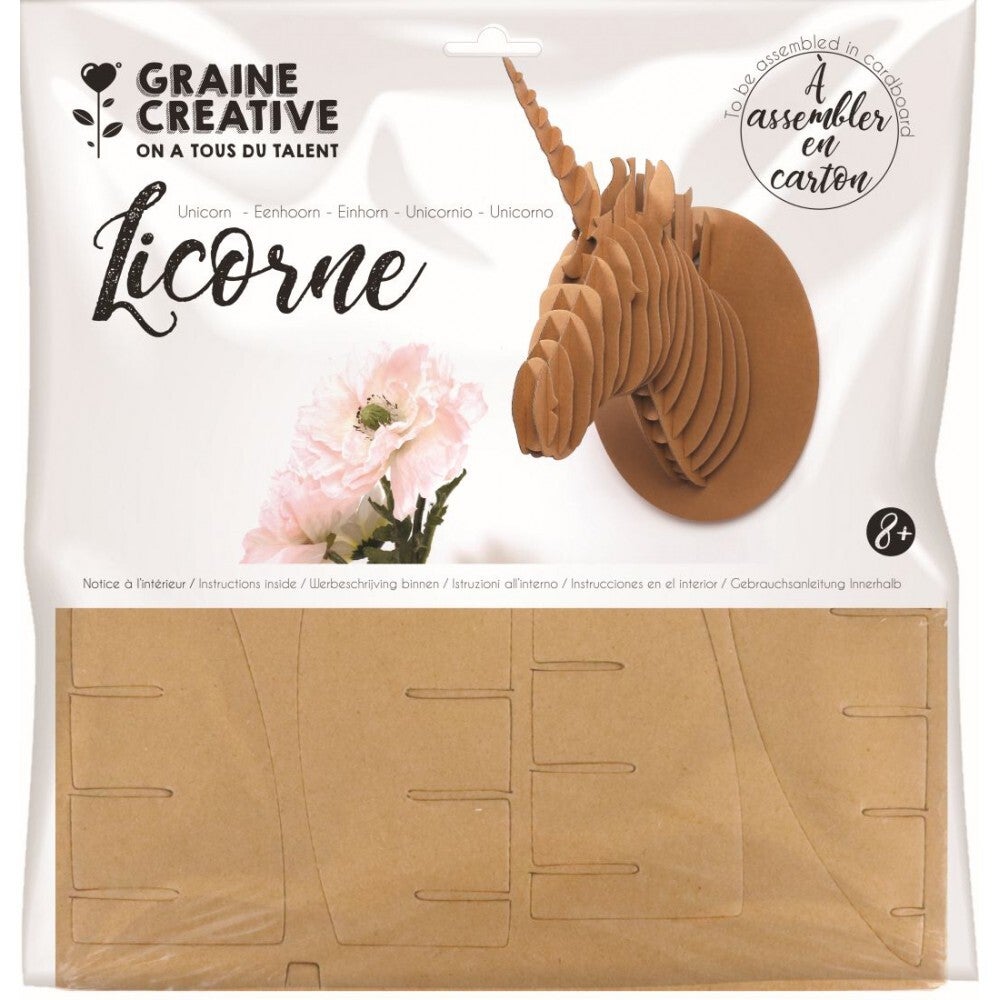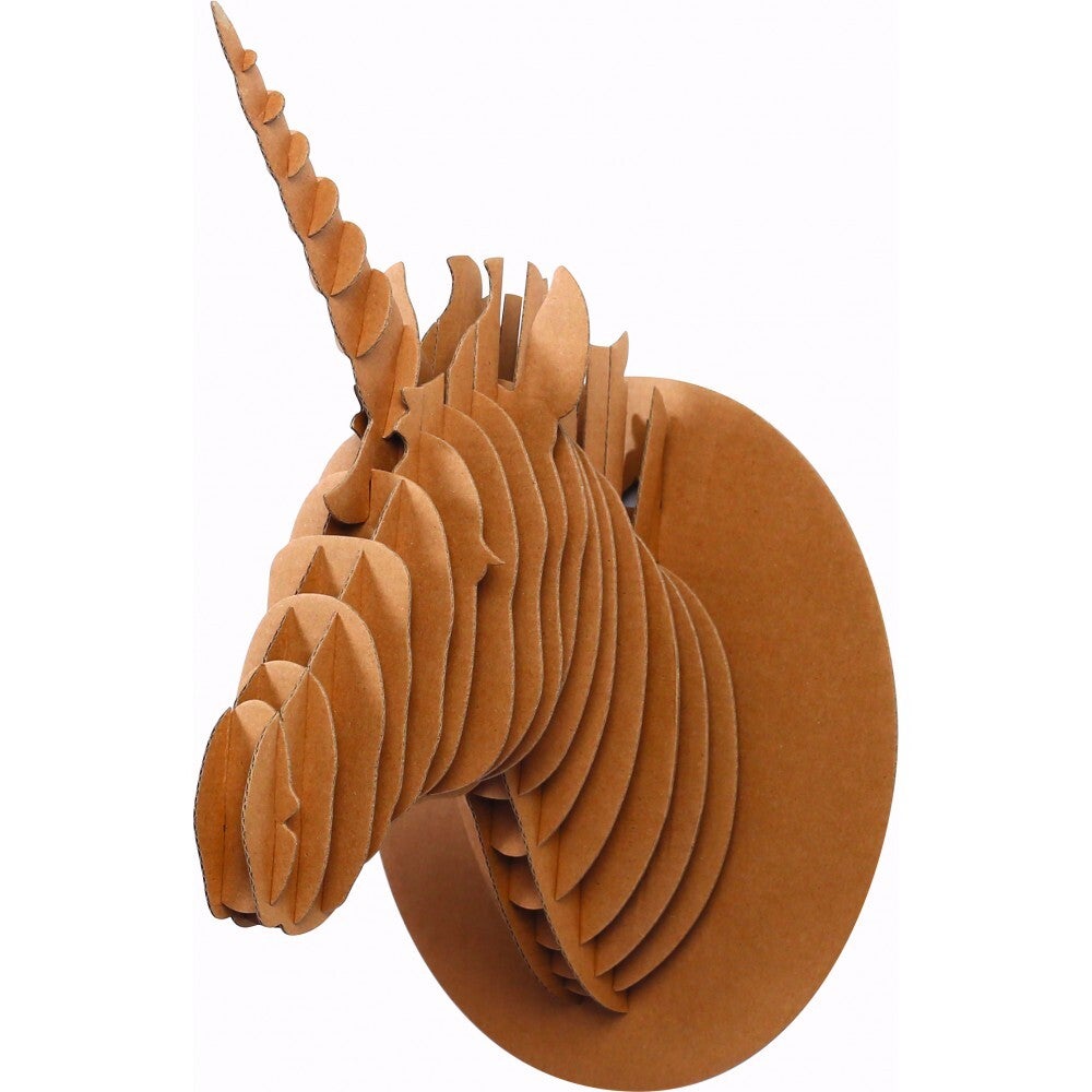 Kartonnen 3D set in de vorm van een eenhoorn om in elkaar te steken. Gemaakt om daarna aan de muur te hangen.