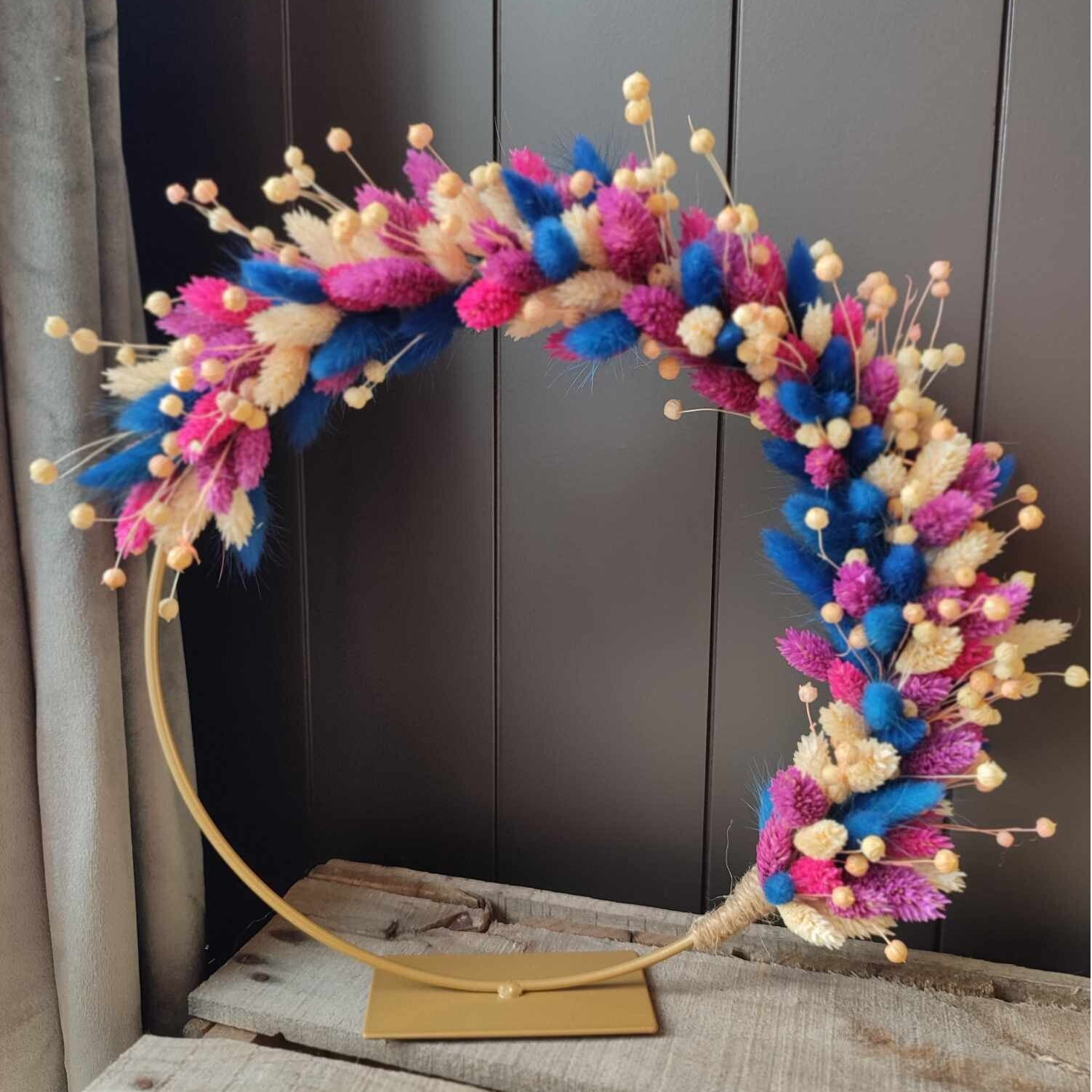 In deze workshop maken we een droogbloemenstaander met droogbloemen. Geen ervaring vereist.