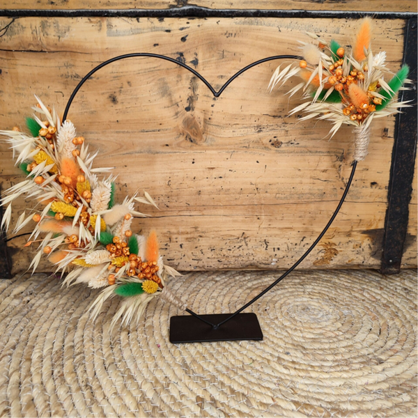 Metalen hart, 30 cm, keuze uit een gouden staander of een zwarte staander.