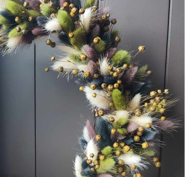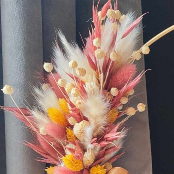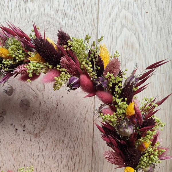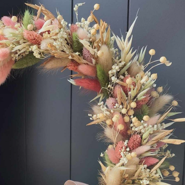 De punniknaam wordt gekozen in een bijhorend kleur van de droogbloemen. Dit is vaak het kleur dat het sterktste overheerst in de hoepel. Toch een specifiek kleur gewenst, laat het ons weten!