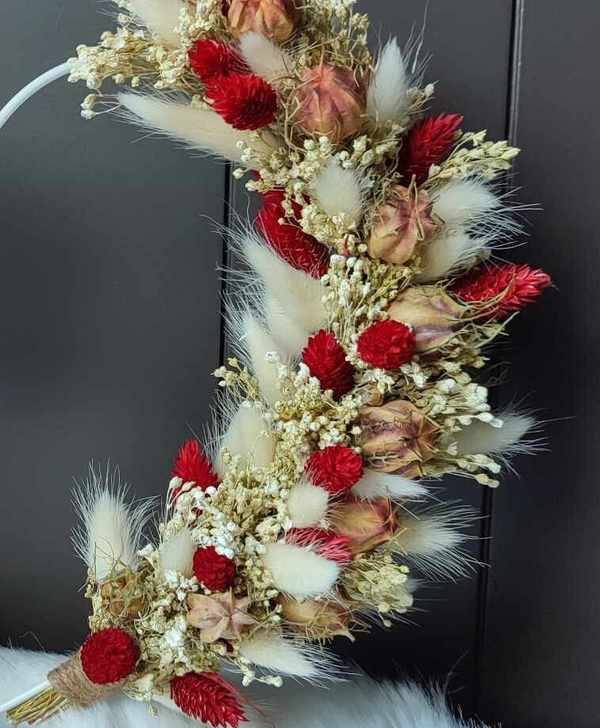 De punniknaam wordt gekozen in een bijhorend kleur van de droogbloemen. Dit is vaak het kleur dat het sterktste overheerst in de hoepel. Toch een specifiek kleur gewenst, laat het ons weten!