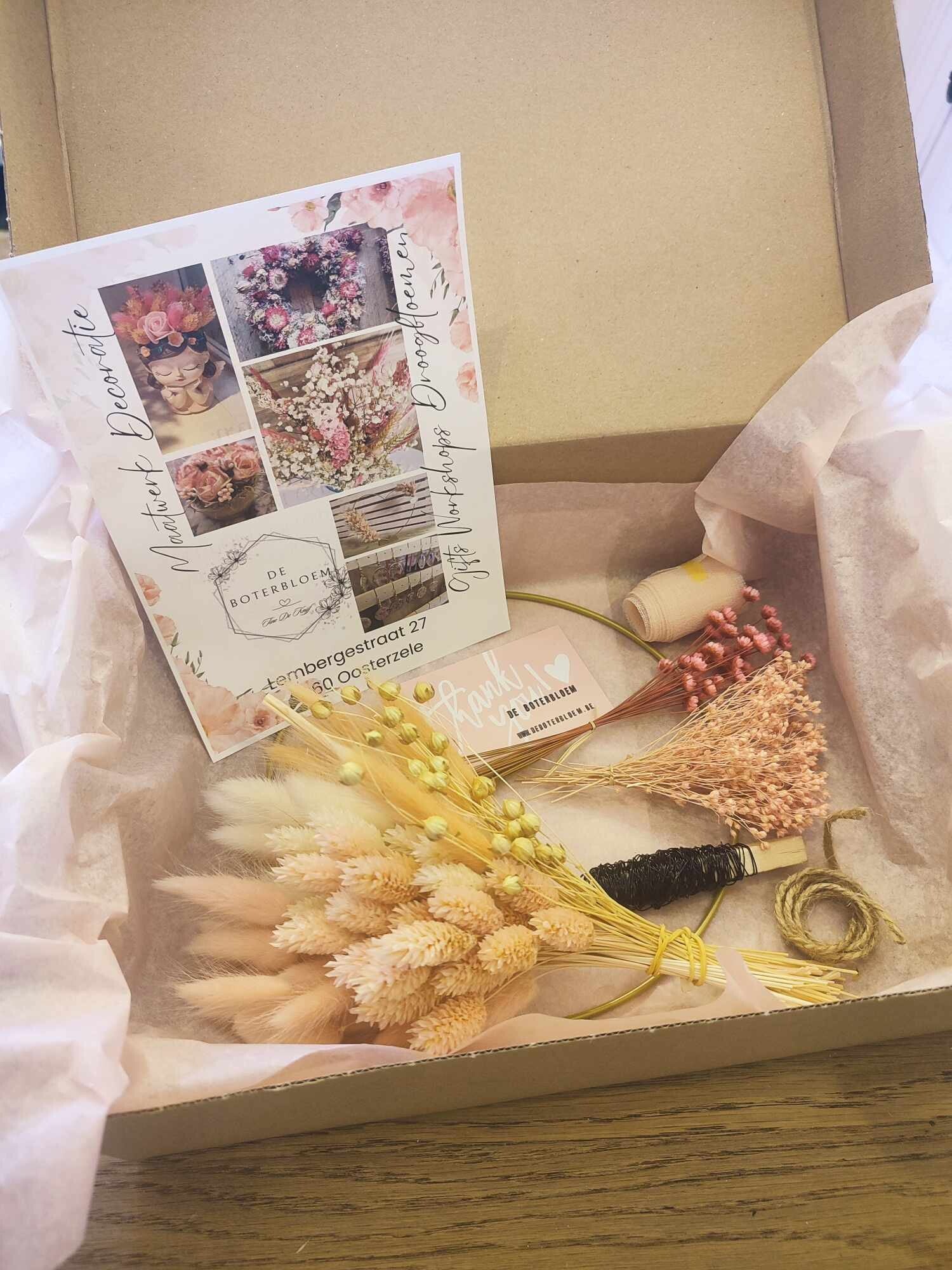 Laat je creativiteit de vrije loop met onze DIY box en maak je eigen flowerhoop.(20cm) Duurtijd +-1u30.