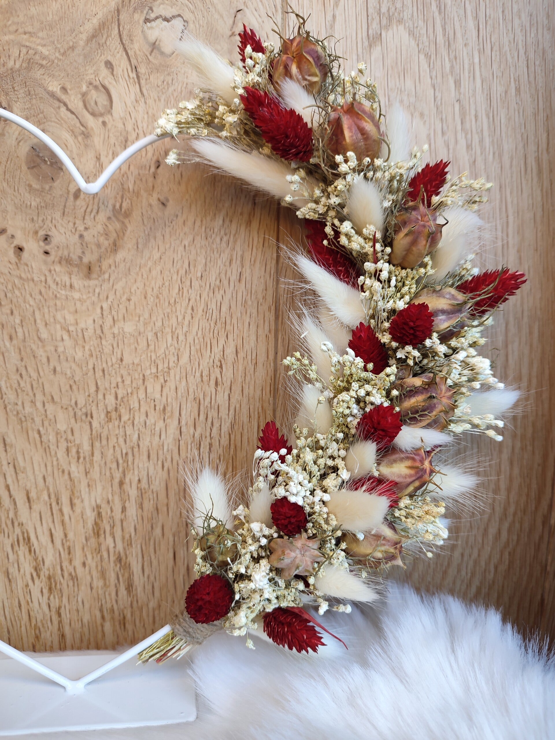 Droogbloemenstaander in de vorm van een hartje, gemaakt uit een selectie van kwalitatieve droogbloemen.