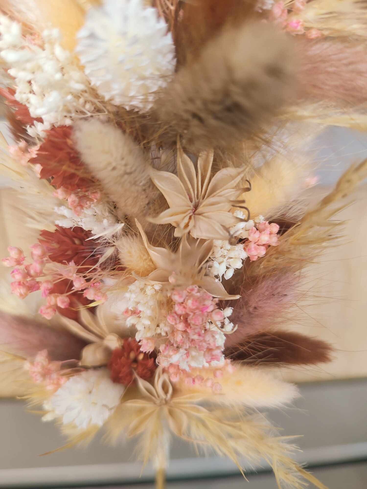 Droogbloemenstaander in de vorm van een rechthoek(25cm), gemaakt uit een selectie van kwalitatieve droogbloemen.
