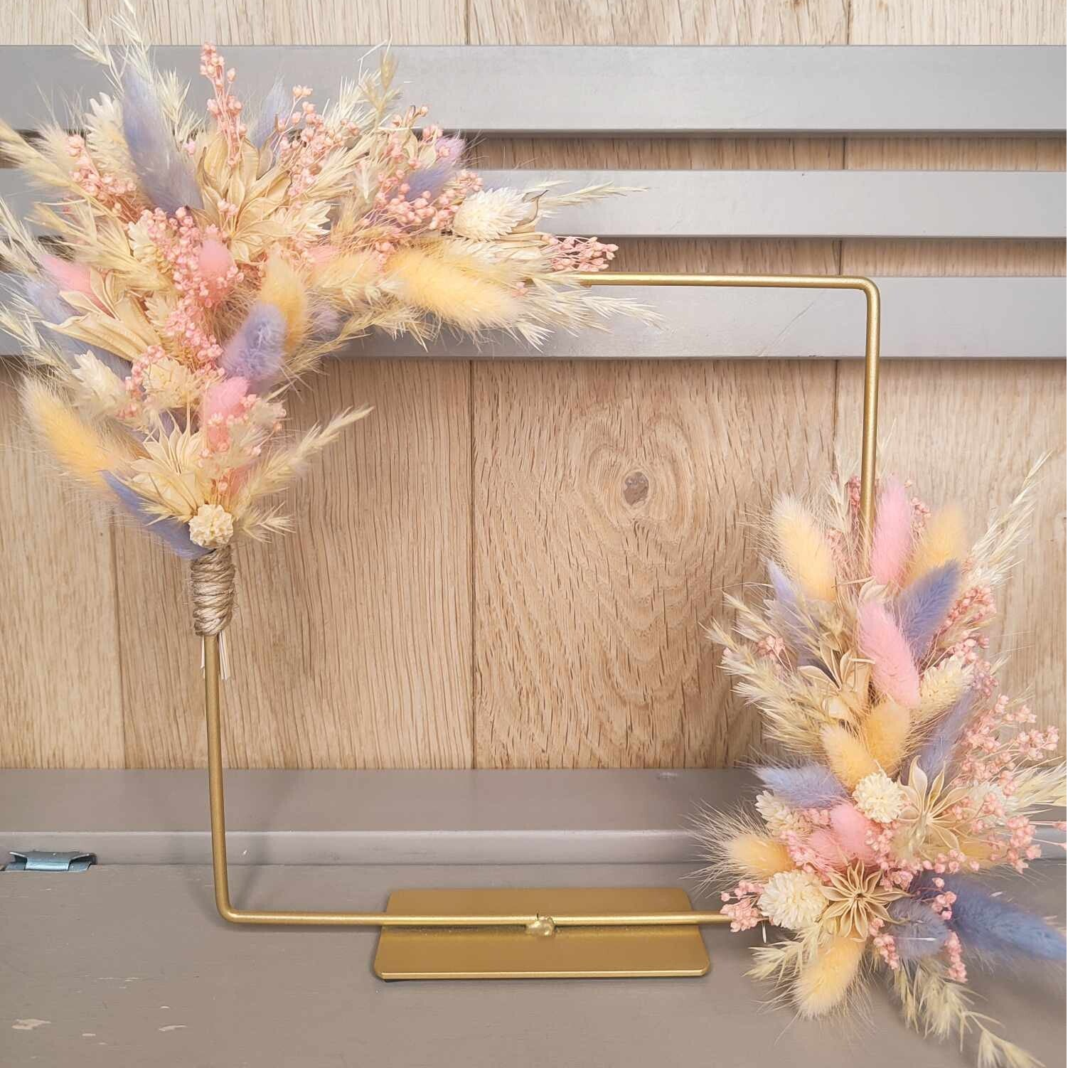 Droogbloemenstaander in de vorm van een vierkant (25cm), gemaakt uit een selectie van kwalitatieve droogbloemen.
