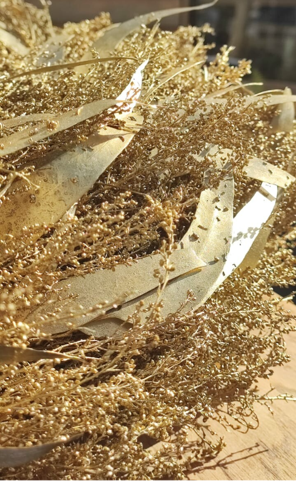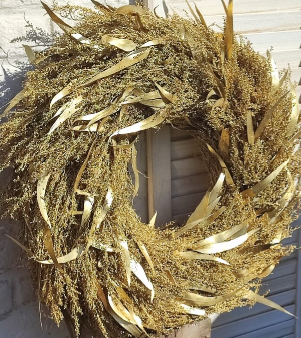 Gouden krans met diameter 65cm.
